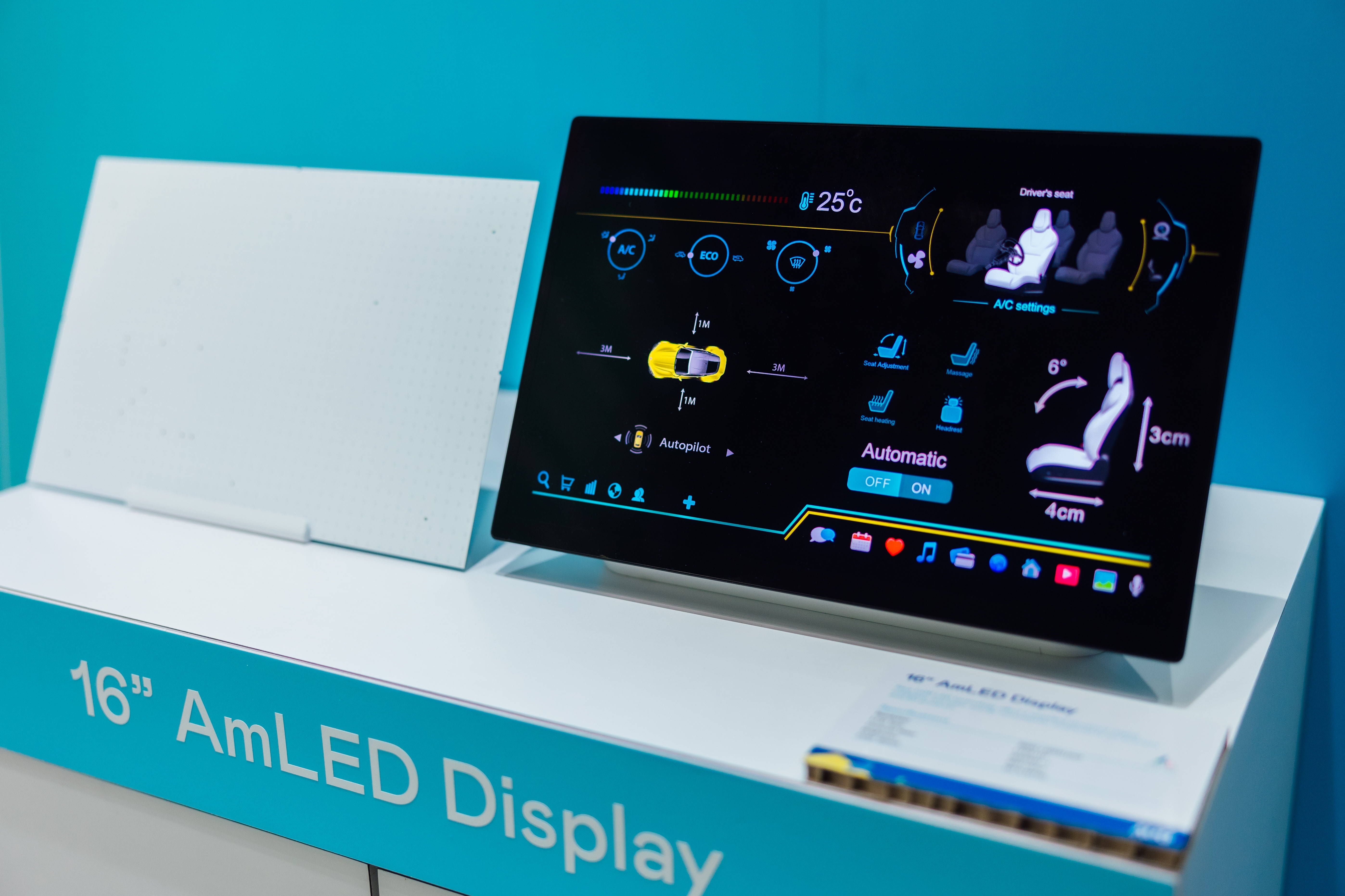 AUO amplified  the succes of AmLED display technology, introducting into automotive products and successfully upgrading it. Compared with the previous generation, it can save 25% of energy consumption, while also being thinner and lighter.