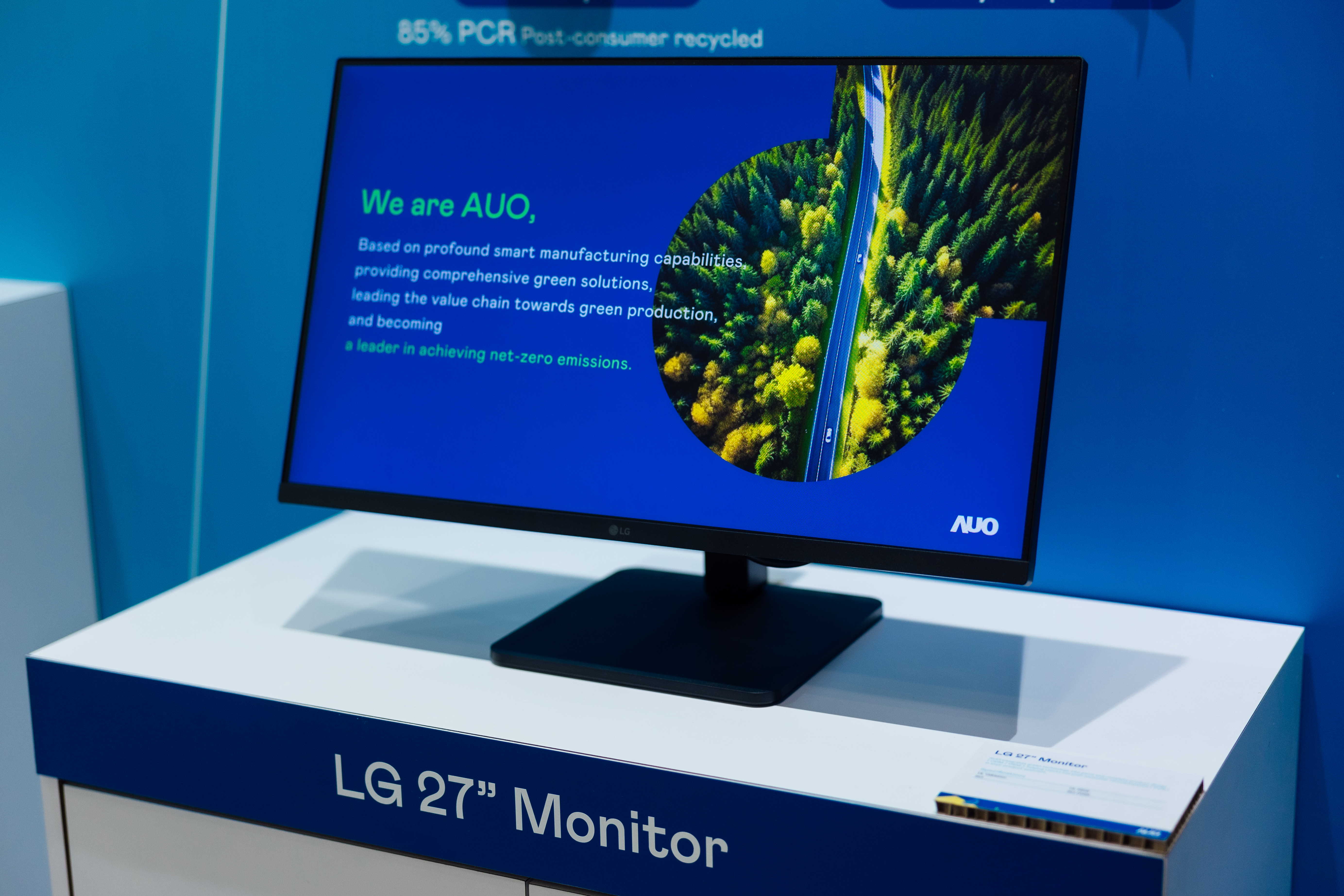 AUO applied post-consumer recycled (PCR) plastics in their display panel, supporting clients to develop monitor that use more than 85% recycled materials.