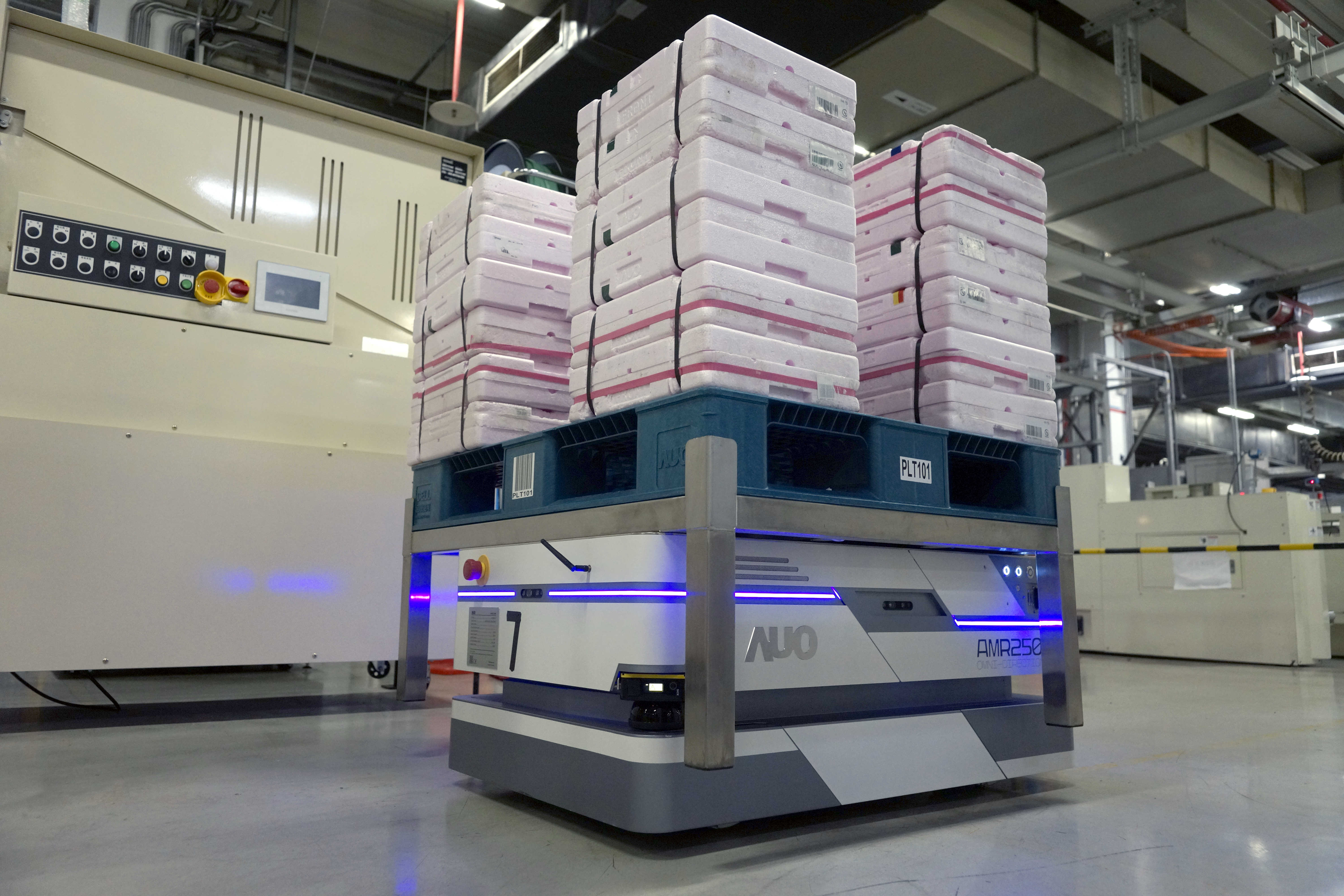 jinnian金年会运用数字孪生系统,结合AMR无人搬运车进行派送,达成低库存高效率的智能化仓储物流管理。